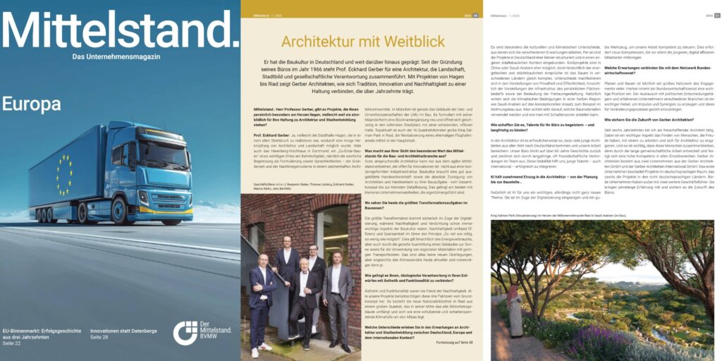 In der aktuellen Ausgabe des Unternehmermagazins Mittelstand spricht Prof. Eckhard Gerber über die Haltung, die Gerber Architekten seit der Gründung im Jahr 1966 prägt:
