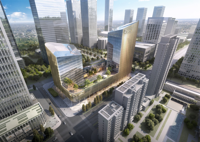 Wir freuen uns sehr, dass unser Bürokomplex Doppelhochhaus im neuen Central Business District in Jinan, Shandong Province, China, die Baugenehmigung erhalten hat. Die aufgeständerten Baukörper ermöglichen ein ein „Durchfließen“ der Besucher in den Innenhof, der sich als öffentlicher Stadtraum anbietet und zum Flanieren und Einkaufen einlädt. Auf dem Dach des höheren Turms wird es einen Multifunktionsraum und einen Sky Garten mit Ausblicken in das neue CBD Gebiet geben. Die Bauzäune stehen bereits und die Bagger rollen an!