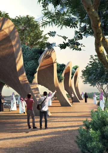 A key feature of King Salman Park is the symbiotic relationship between architecture and landscape. It is based on the Salmani design philosophy and rooted in centuries-old local building traditions. Characteristic features include climate-adapted building structures that are closely integrated into the landscape, the use of cooling building materials, the utilization of natural air circulation, and the strategic implementation of shading concepts through vegetation and shading elements.