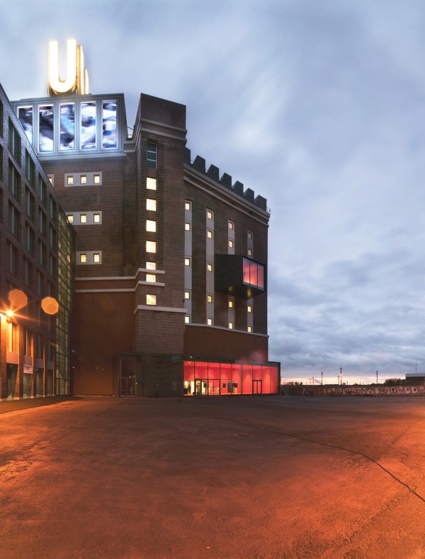 With its new ‘vertical’ – i.e. the ground-to-roof – entrance atrium the size of the U-Tower’s volume (a former part of the Union Brewery) can be fully experienced from inside for the first time. Escalators lead from the ground-floor foyer past all the exhibition levels to the ‘cathedral room’ directly underneath the illuminated ‘U’ sign on top of the tower. Conically contorted, metal-clad cubic shapes penetrate the building from inside out. They appear like counterpoints to the existing red clinker façades and point to the unusual roof shape of the ‘cathedral room’.