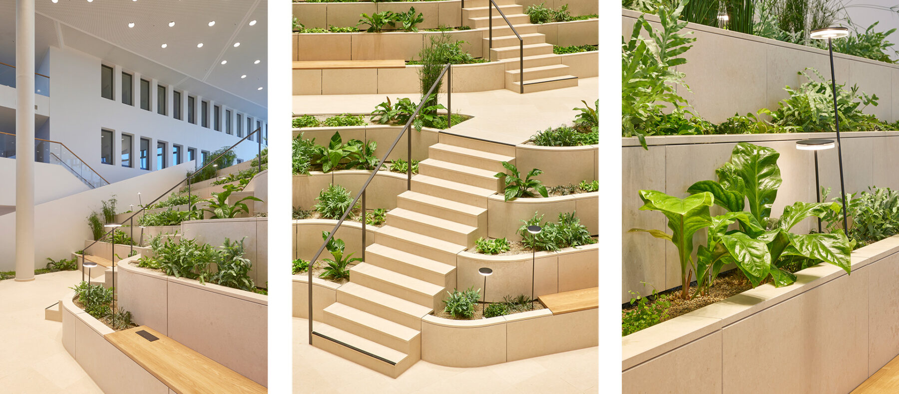 Als klares Bekenntnis zum Standort Dortmund ist das dynamisch spitzzulaufende Gebäude auf einem Plateau in Richtung der Dortmunder Universtität positioniert. Zentraler Entwurfsgedanke ist es, ein System offener und sozialer Raumstrukturen für dynamische Kommunikationsprozesse und innovative Lösungen anzubieten. Elemente wie das gläserne Foyer mit Café-Bar, das Mitarbeiterrestaurant mit Innen- und Außenbereich, die terrassenartige Landschaftstreppe und die als „grüne Mitte“ begehbare Hoflandschaft befördern die Kommunikation der Mitarbeiter untereinander und sollen zur Identifikation der Mitarbeiter mit ihrem Unternehmen beitragen. Auch die Öffnung zur Landschaft und die räumlichen Schnittstellen sind von zentraler Bedeutung im architektonischen Entwurf. So entsteht ein fließender Übergang zwischen Architektur und Landschaft sowie ein Informations- und Wissenstransfer innerhalb des Unternehmens und in die offene Gesellschaft.