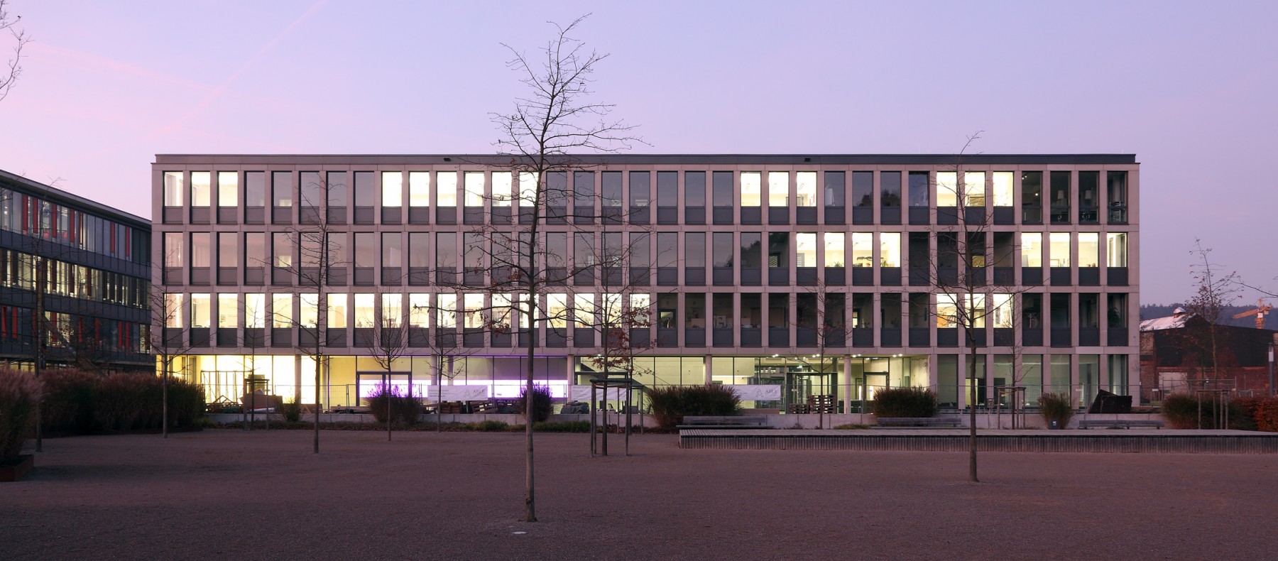Die neue Firmenzentrale auf dem ehemaligen Steinmüllergelände in Gummersbach ist als konsequentes viergeschossiges Rechteck konzipiert, das mit seinen Bürobünden ein Lichtraumvolumen umschließt. Zum einen wurde es als begrüntes Atrium und zum anderen als gebäudehohe Eingangshalle mit Glasdach ausgeführt.