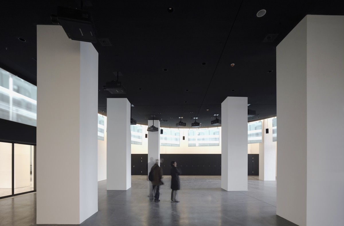 Durchschreitet man die „Kunst-Vertikale“ im Erdgeschoss gelangt man ins Foyer, das wie eine überdachte urbane Piazza den Museumsvorplatz mit dem neuen Quartier im Westen verbindet. An das Foyer schließen sich ein Museumsshop und die Cafeteria an, die auch außerhalb der Öffnungszeiten des Museums zugänglich sind. Gleiches gilt für den Veranstaltungssaal im Erdgeschoss wie auch für den „Kathedralenraum“ auf der obersten Ebene. Die „Kunst-Vertikale“ ermöglicht sowohl den Museumsrundgang als auch den gezielten Besuch einzelner Ausstellungsbereiche. Die Blickbeziehungen durch diesen schmalen hohen Raum und die Inszenierung des historischen Gebäudes als eigenständiges Exponat stehen im spannungsvollen Dialog mit der fokussierten Wahrnehmung der Kunst in den Ausstellungsetagen.